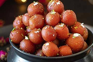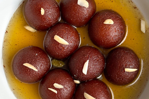 This is a traditional Indian dessert. Spongy milky balls soaked in rose scented syrup. Delicious with fresh cream, Kulfi, ice cream etc. To make it even more fancy, sprinkle gold-leaf on top of each serving.