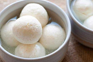 Rasgulla is an Indian syrupy dessert popular in the Indian subcontinent and regions with South Asian diaspora. It is made from ball-shaped dumplings of chhena and semolina dough, cooked in light syrup made of sugar. This is done until the syrup permeates the dumplings.